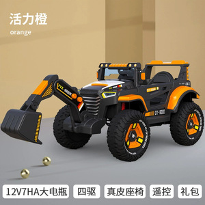 挖掘机/活力橙/12V7A大电瓶/四驱/礼品+遥控+摇摆+仿真皮座软座椅