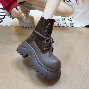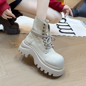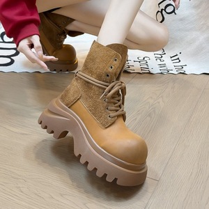 MuXuan~ 复古风厚底马丁靴女大黄靴2025秋冬新款圆头百搭增高短靴