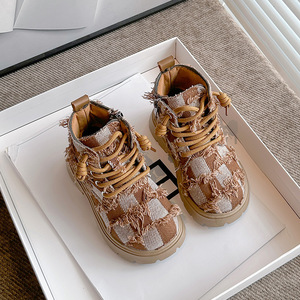 儿童时尚马丁靴圆头侧拉链英伦风牛仔布女童皮靴秋冬男童短筒靴子