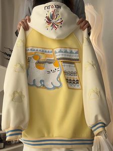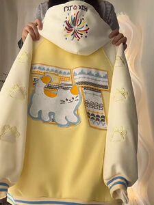 2025新款可爱卡通字母开衫短外套女春秋宽松高级感百搭夹克棒球服