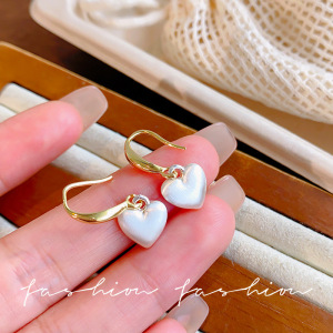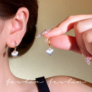 简约奶白色爱心耳环女小众设计高级感气质耳饰2025年新款爆款耳圈