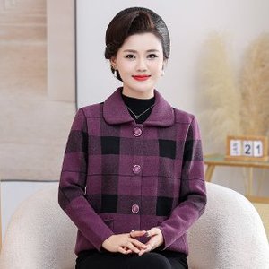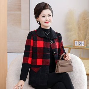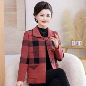 2025妈妈秋季薄风衣外套中老年女装春秋休闲格子翻领洋气宽松上衣