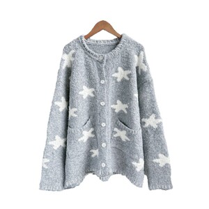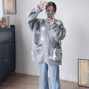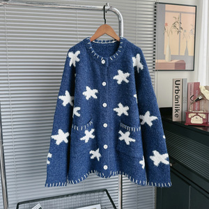 重工宽松慵懒风毛衣外套秋冬季新款女装圆领星星设计感针织开衫潮