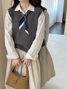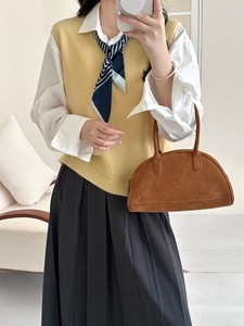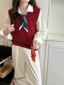 设计感系带丝巾v领针织背心女早秋新款宽松叠穿百搭气质毛衣马甲