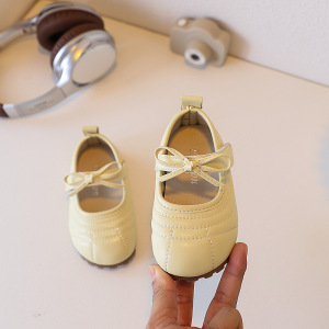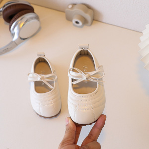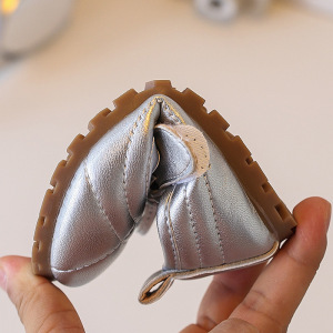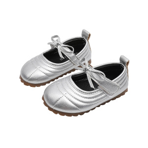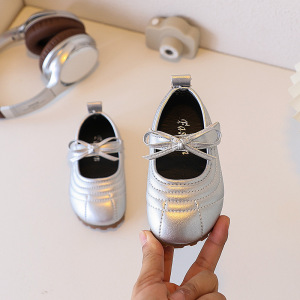 儿童银色小皮鞋2025秋季新款韩版小女孩甜美蝴蝶结公主鞋洋气单鞋
