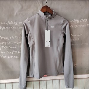 2025秋季新款ALO银色反光字母印花半拉链长袖瑜伽服跑步运动
