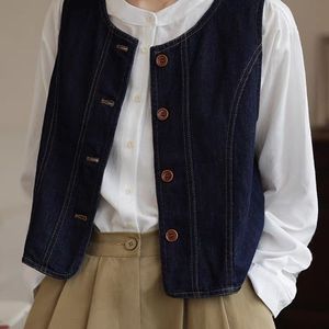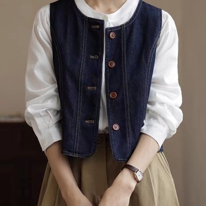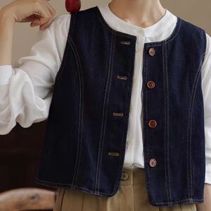 日系复古牛仔马甲新款韩版2025春秋背心小个子时尚设计坎肩深蓝