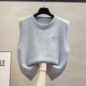 2025早秋新款毛衣背心女慵懒风圆领宽松针织马甲无袖上衣外搭叠穿