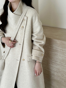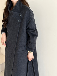 韩国东大门2025新款秋冬挎包双面羊毛大衣立领宽松毛呢外套女