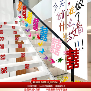 多巴胺结婚楼梯贴扶手装饰囍字客厅婚房布置用品婚礼彩色喜字贴纸