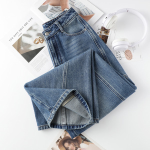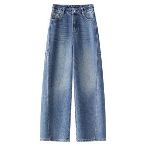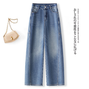 纯棉侧边分割设计弯刀牛仔裤女2025年秋季新款梨形阔腿香蕉镰刀裤