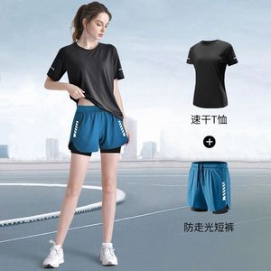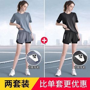 运动套装女夏季马拉松跑步新款瑜伽冰丝速干衣短袖训练大码健身服