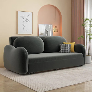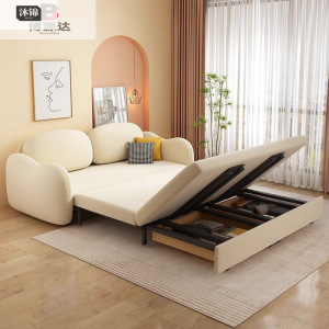 奶油风两用沙发床小型可折叠可拆洗磨砂绒沙发多功能客厅推拉沙发