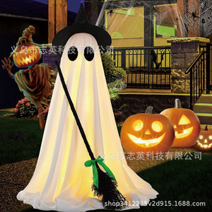 跨境万圣节发光幽灵装饰女巫扫把幽灵灯鬼节庭院派对花园草坪摆件