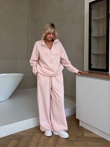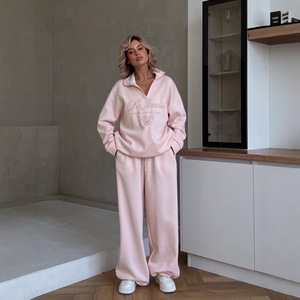 速卖通热销字母刺绣高级感半拉链卫衣宽松直筒休闲长裤时尚套装女