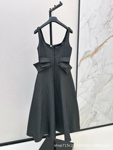 深圳南油25秋冬高级优雅名媛黑金色蝴蝶结收腰显瘦吊带背心连衣裙
