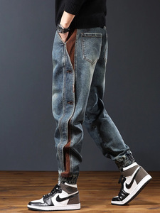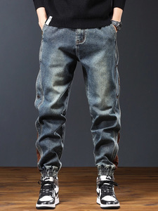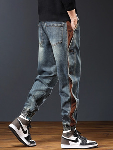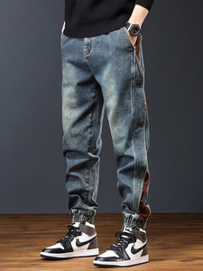 秋季新款复古牛仔裤男士潮牌美式拼接哈伦宽松百搭休闲潮流束脚裤