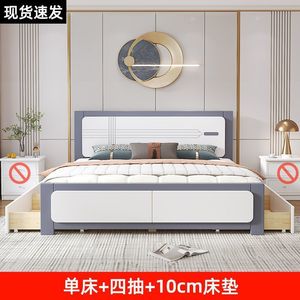 【板材加粗】宝马灰实木床+10CM垫+四抽
