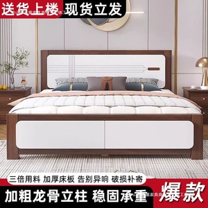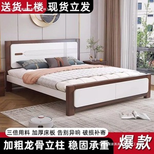 实木床1.8米双人床主卧1.5家用床经济型1.2小户型单人床外贸