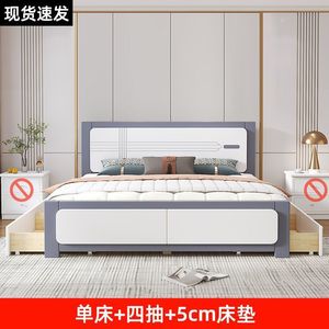 【板材加粗】宝马灰实木床+5cm垫+四抽屉