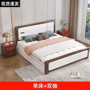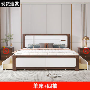 【板材加粗】胡桃款实木床+四抽屉【送货到家】