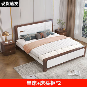 【板材加粗】胡桃款实木床+10CM垫+柜2个