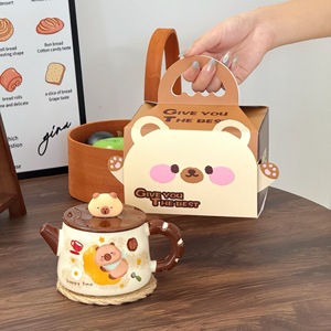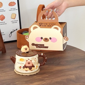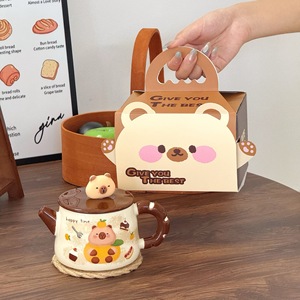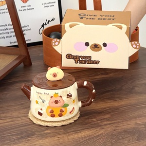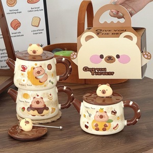 可爱动物马克杯带盖勺高颜值陶瓷水杯女生假壶杯子咖啡早餐杯儿童