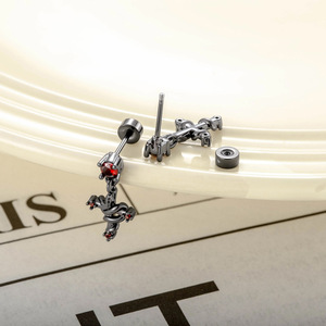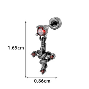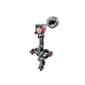 亨森新款红色锆石蛇形缠绕十字架吊坠甜酷风情侣穿刺耳饰