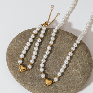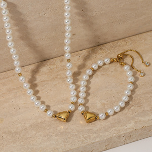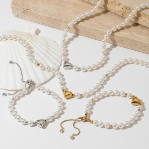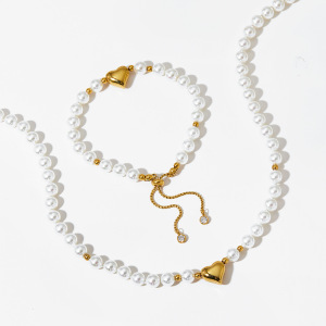 欧美新款不锈钢光面爱心可抽拉手链项链套装轻奢质感高品质饰品女