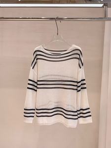 2025年秋季新款一字领撞色条纹针织衫宽松轻薄天丝微透韩版慵懒风