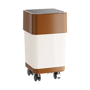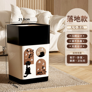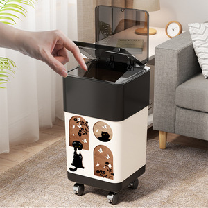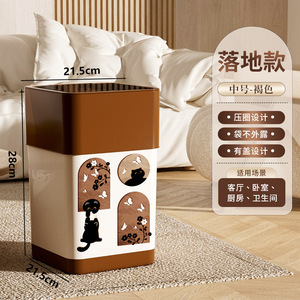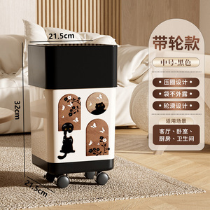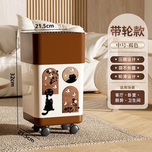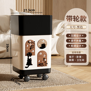 带轮新中式中古风垃圾桶家用客厅轻奢高颜值卧室带盖卧室卫生桶