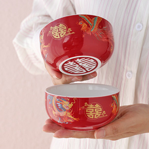 龙凤喜碗新人结婚碗筷套装一对红色面碗甜汤碗婚礼婚庆陪嫁夫妻碗