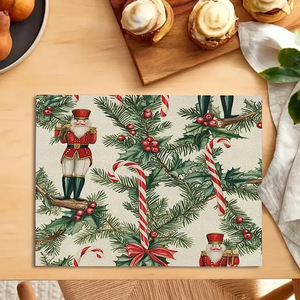 跨境亚马逊Temu圣诞节餐垫节日圣诞树亚麻餐垫餐厅隔热垫氛围布置