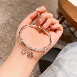 正品足银手镯女纯银光面素圈999实心高级感银镯子送女友生日继灿