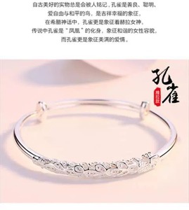 孔雀银手镯25克 【免费刻字+礼盒证书】