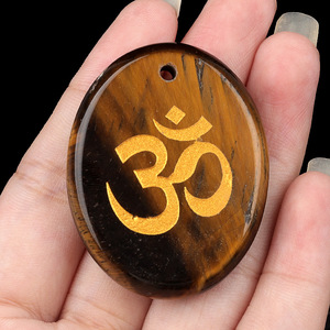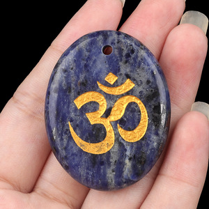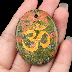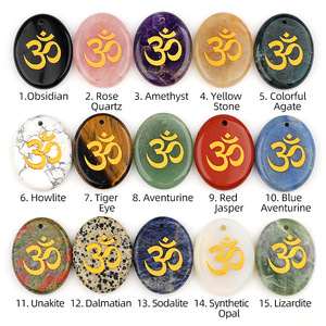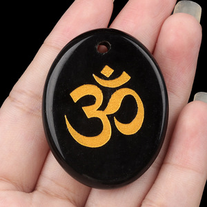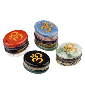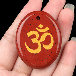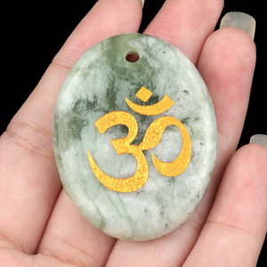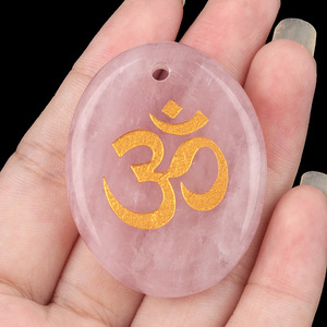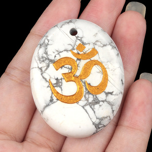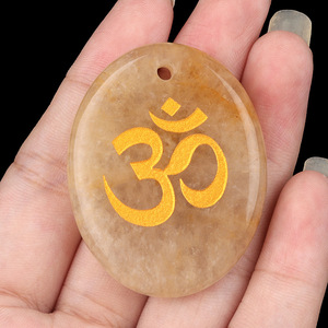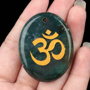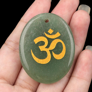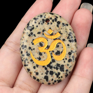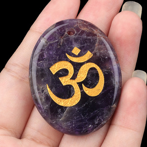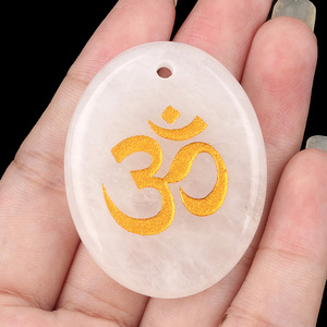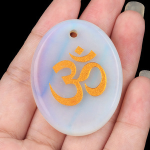 2338-天然水晶玛瑙刻字OM符号掌心石瑜伽符文DIY钥匙扣挂件配件