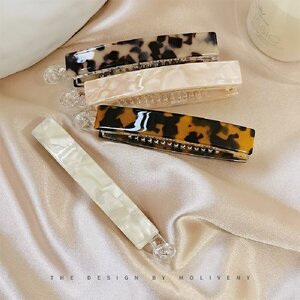 韩版时尚复古醋酸豹纹发夹发饰头饰简约新款马尾盘发夹香蕉夹竖夹