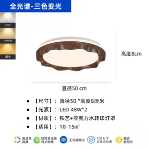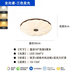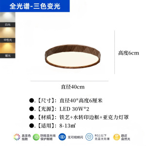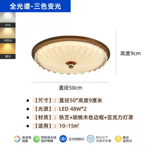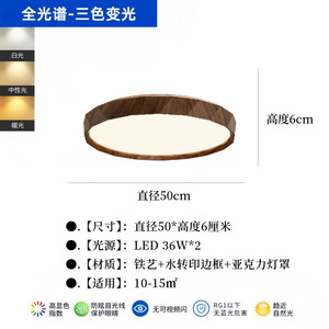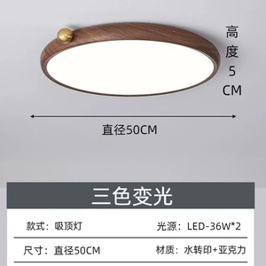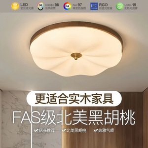 中古吸顶灯全光谱护眼卧室灯胡桃木色书房间阳台餐厅主灯中山灯具