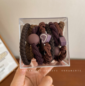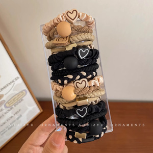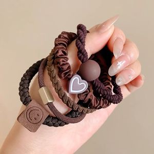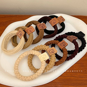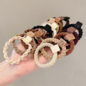 可爱笑脸发饰加宽加粗橡皮筋女韩系简约发绳咖色小熊头绳百搭头饰