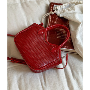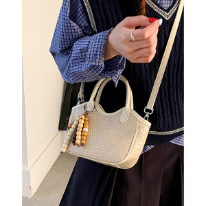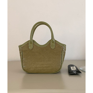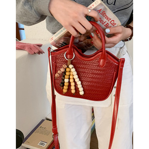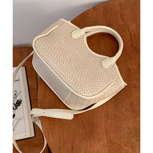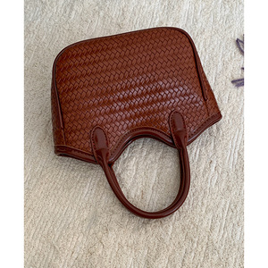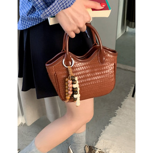 复古质感手提包小拎包女2025新款简约编织纹菜篮子包通勤斜挎包