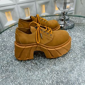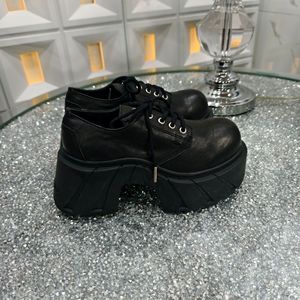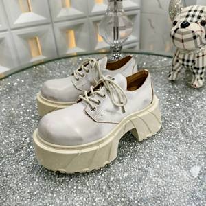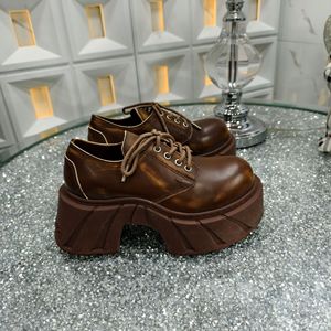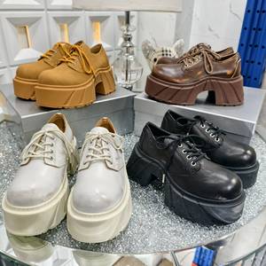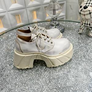 25新款复古擦色系带单鞋女小皮鞋真皮松糕厚底大头增高百搭德比鞋