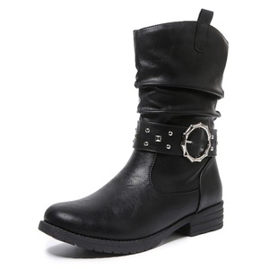 外贸欧美风大码西部牛仔中筒靴女新款时尚链条铆钉粗跟骑士靴wish