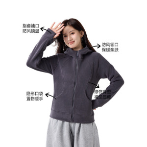 lulu同款2025秋冬爆款连帽拉链式保暖长袖运动瑜伽休闲卫衣外套女