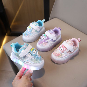亮灯女宝宝鞋子软底婴儿学步鞋女童板鞋男童运动鞋皮面小童公主鞋