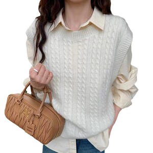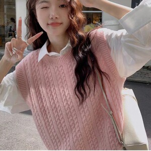 100羊毛针织麻花马甲女秋冬叠穿衬衫外搭坎肩显瘦纯色羊毛背心潮