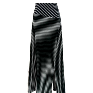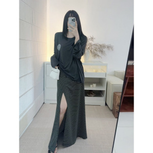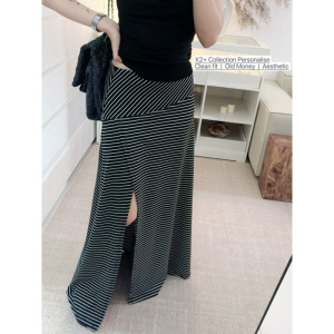 塞纳2025夏新款淡人黑色条纹针织半身裙女设计感小众高腰开叉半裙