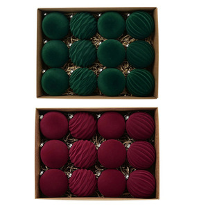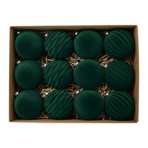 跨境新品6cm植绒圣诞球圣诞树挂件酒红墨绿圣诞植绒球圣诞装饰球