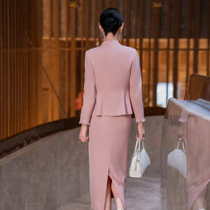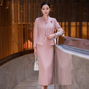 粉色时尚套装女2025秋季新款高档西装外套气质减龄连衣裙两件套裙