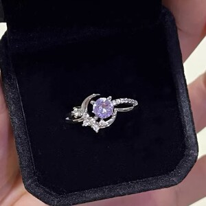 设计感小众百搭食指戒个性紫色月亮时尚戒指镶钻清新女设计感指环