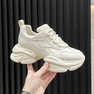 真皮老爹鞋女款2025夏秋冬新款鞋子女厚底内增高小白休闲运动鞋爆
